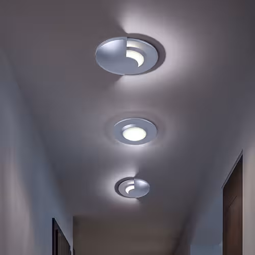 LED inbouwspots in de gang bieden discrete maar effectieve verlichting die de hele ruimte gelijkmatig verlicht. Ze creëren veiligheid door struikelgevaar te vermijden. Tegelijkertijd gaan ze naadloos op in het plafond en doen ze de gang groter lijken.