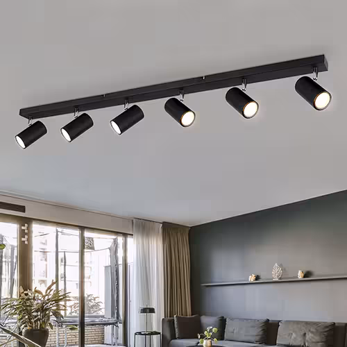 Deze modellen zijn ideaal voor grote ruimtes. Verschillende verstelbare spots verspreiden het licht gelijkmatig.