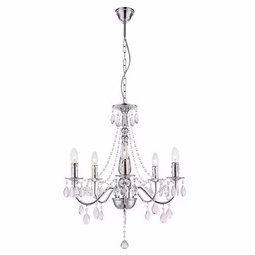 Schakel de voeding uit en maak de kroonluchter schoon met een zachte doek en een mild schoonmaakmiddel. Glasreiniger of azijnwater zijn geschikt voor kristallen elementen.